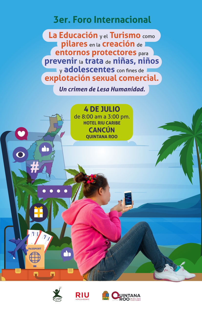 El 2° Foro Internacional. Prevención de la Explotación Sexual Comercial de Niñas, Niños y Adolescentes en Línea en Contextos Turísticos, tiene por objetivo, fortalecer alianzas estratégicas y sinergias para la sensibilización, prevención y atención de la ESCNNA en línea en contextos turísticos.