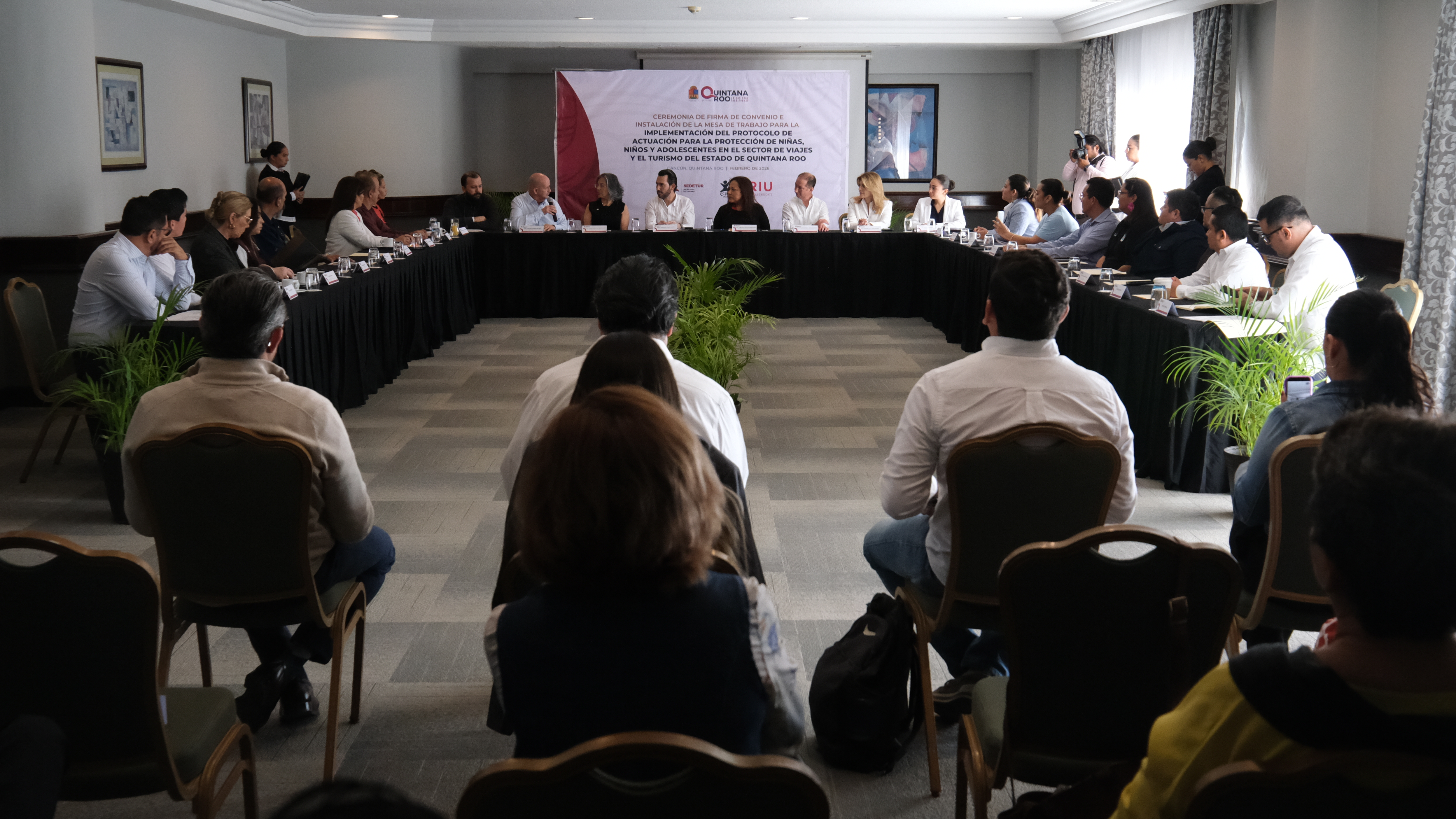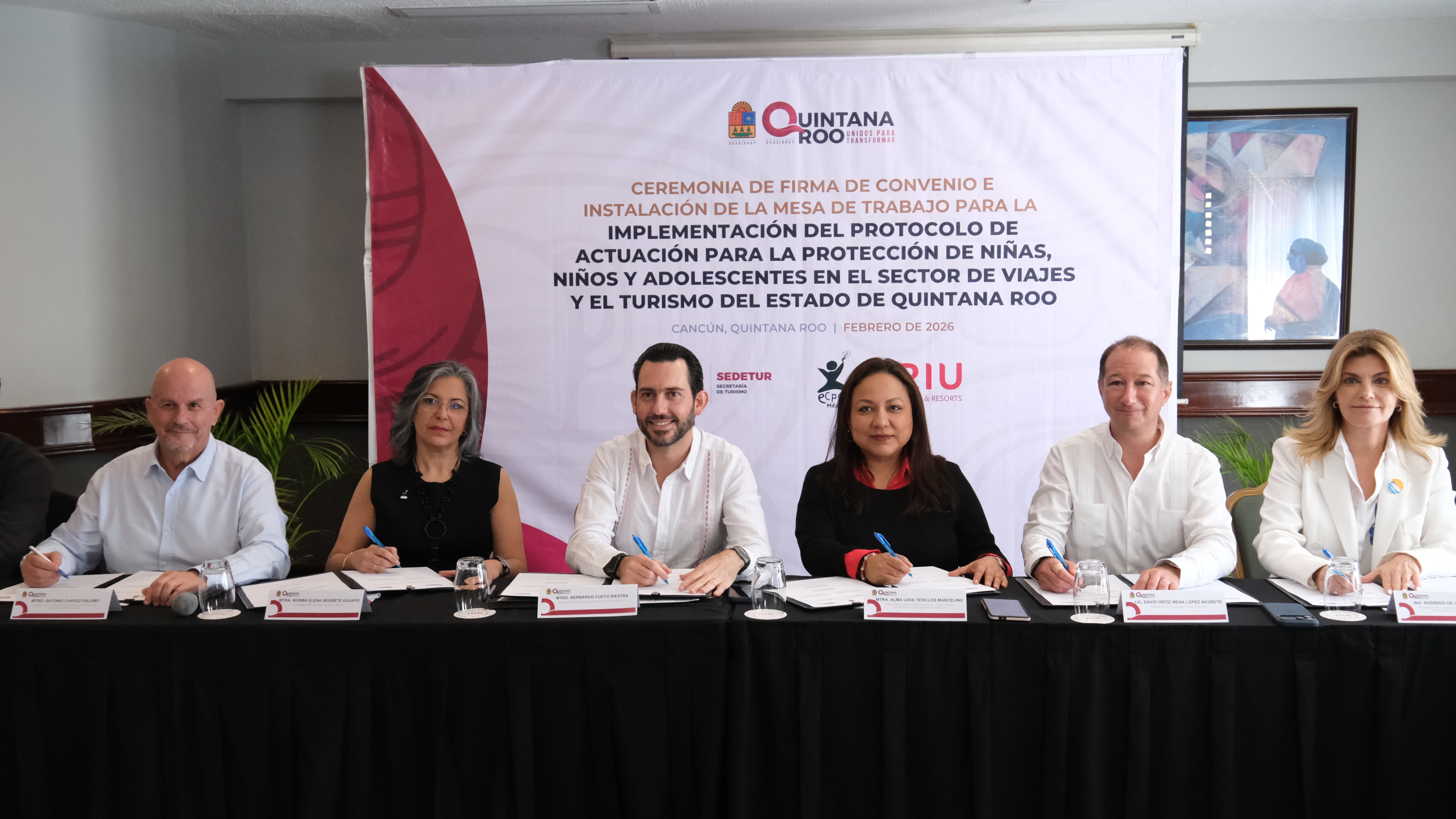 Ceremonia de Firma del Convenio e Instalación de la Mesa de Trabajo para la Implementación del Protocolo de Actuación para la Protección de las Niñas, Niños y Adolescentes frente a la Explotación Sexual Comercial en el Sector de los Viajes y el Turismo, del estado de Quintana Roo.